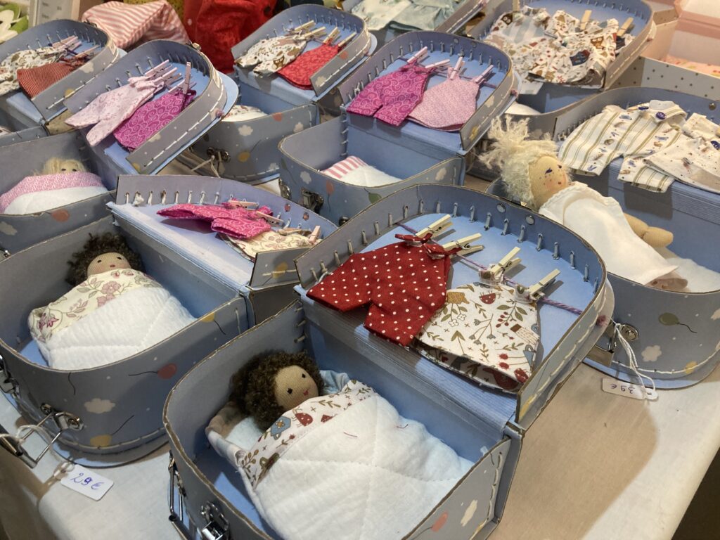 Cadeaux de naissance, capes, snoods, sarouels, gigoteuses, bavoirs, bouillottes sèches et doudous cousus main, puzzles et autres jeux en bois, poupées Waldorf, albums-photos personnalisés, livres jeunesse…