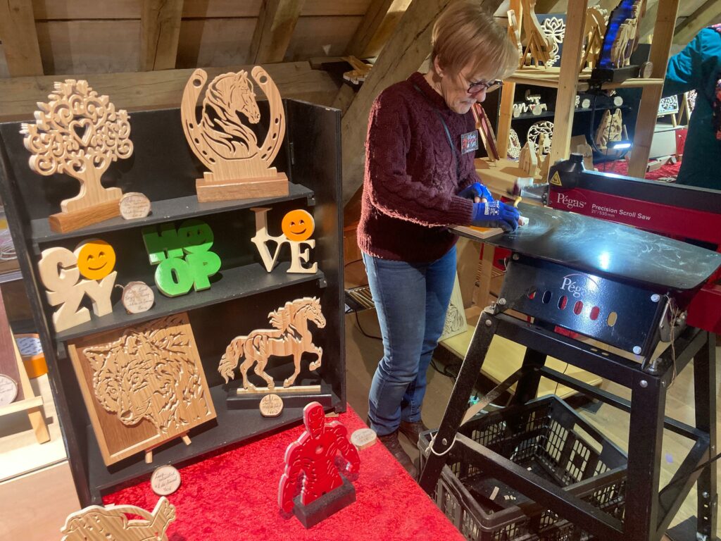 Bougies artisanales naturelles, photophores, boules de Noël, chantournage du bois, lampes peintes sur soie, fleurs séchées, créations en macramé, grès, résine, céramique, sable…